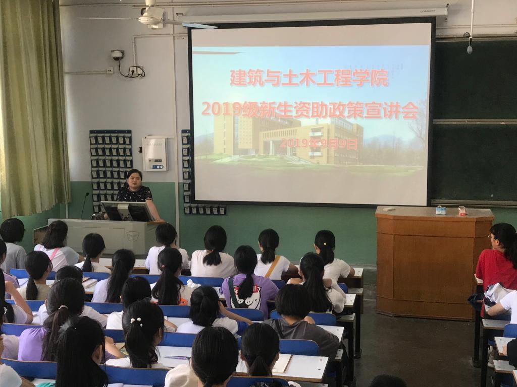 新学期伊始,为了让2019级新生们进一步了解国家和学校的各项资助政策,能够根据自己的家庭实际申报相关资助,我院资助专员邓林老师在新生入校第一天,召开全体新生班会,用一节课时间为新生们讲解了相关资助政策。2019级全体新生参加了此次的宣讲会。