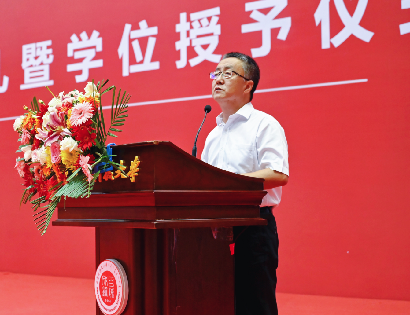 导师代表李晓致辞。他说,包钢与科大一脉相承、血脉相连、情谊深厚。他寄语学生,一要敬畏知识,终身学习。二要坚守初心,坚韧不拔。三要矢志奋斗,行而不辍。