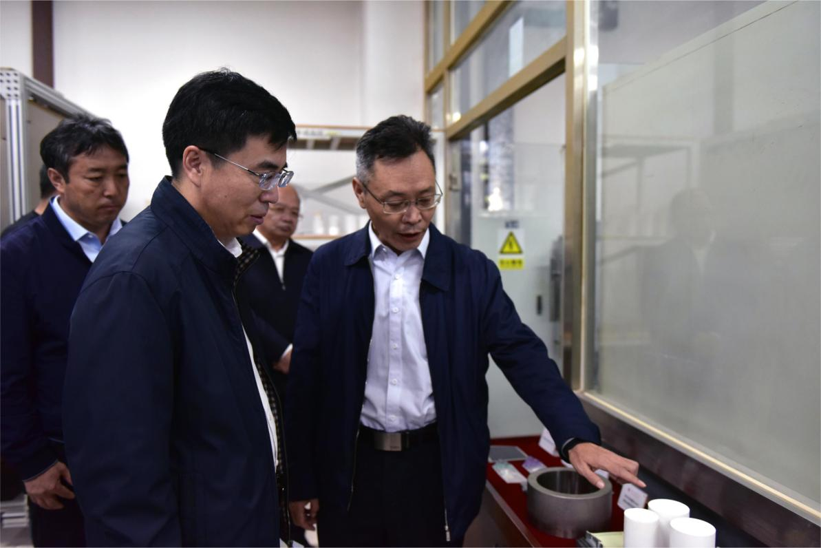 宇文志彪一行还实地调研了“高技术陶瓷与稀土资源高值化利用”实验室,了解了稀土功能材料的研发和成果转化情况。