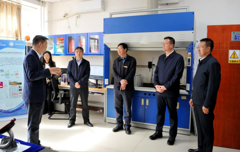 邵文祥、冯银虎一行参观了“1+5+2”示范性特色学院展厅、“高技术陶瓷与稀土资源高值化利用”实验室等。