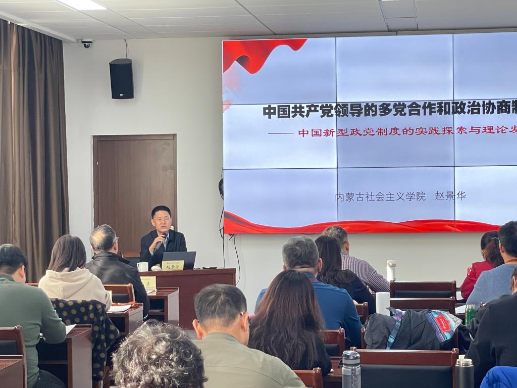 培训班邀请内蒙古社会主义学院副院长赵景华、副教授崔文静、教研室主任陈岩分别作题为《中国共产党领导的多党合作和政治协商制度—中国新型政党制度的实践探索与理论发展》《以铸牢中华民族共同体意识为主线,全方位建设模范自治区》《习近平总书记关于做好新时代党的统一战线工作的重要思想解读》的讲座。