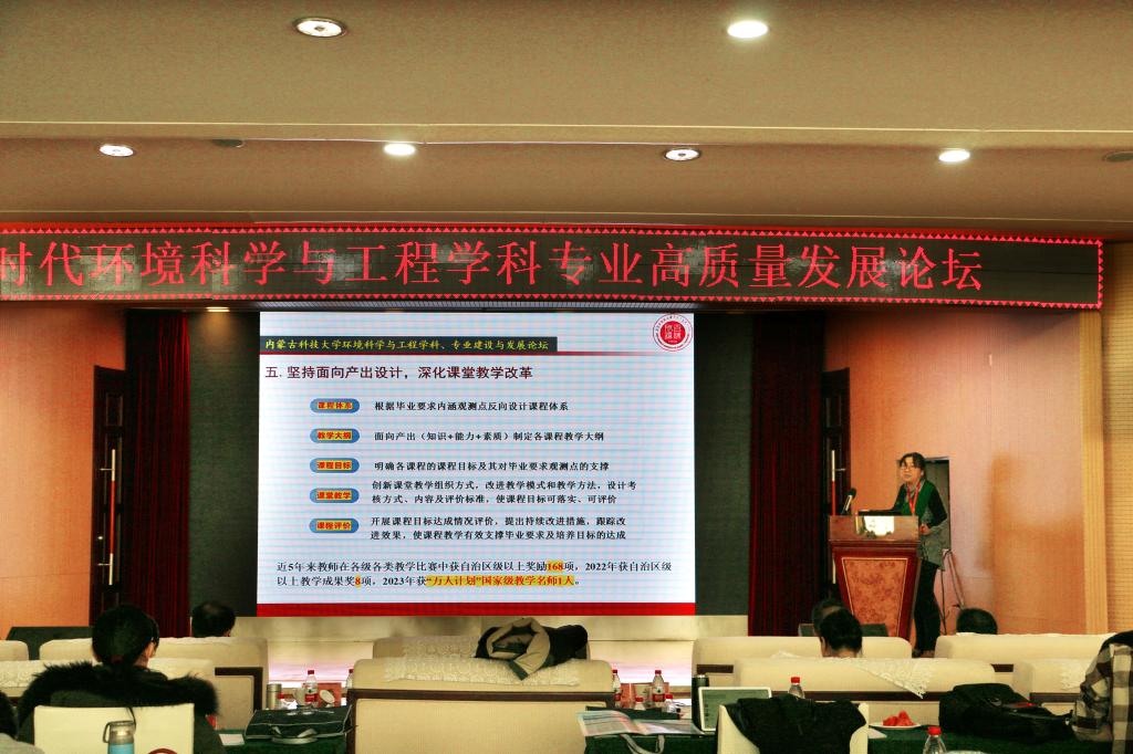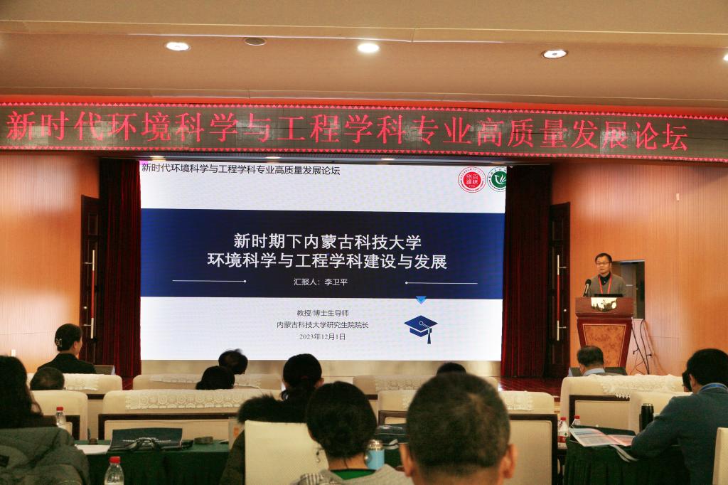 12月1日上午,“新时代环境科学与工程学科专业高质量发展”论坛在稀土国际大酒店举行,副校长屈忠义出席并致辞。来自北京师范大学、北京科技大学、华北电力大学、宁夏大学、内蒙古大学、西安建筑科技大学、上海第二工业大学、太原科技大学、内蒙古工业大学、beat365在线唯一官网等高校的近百位专家学者、师生代表参加了论坛。