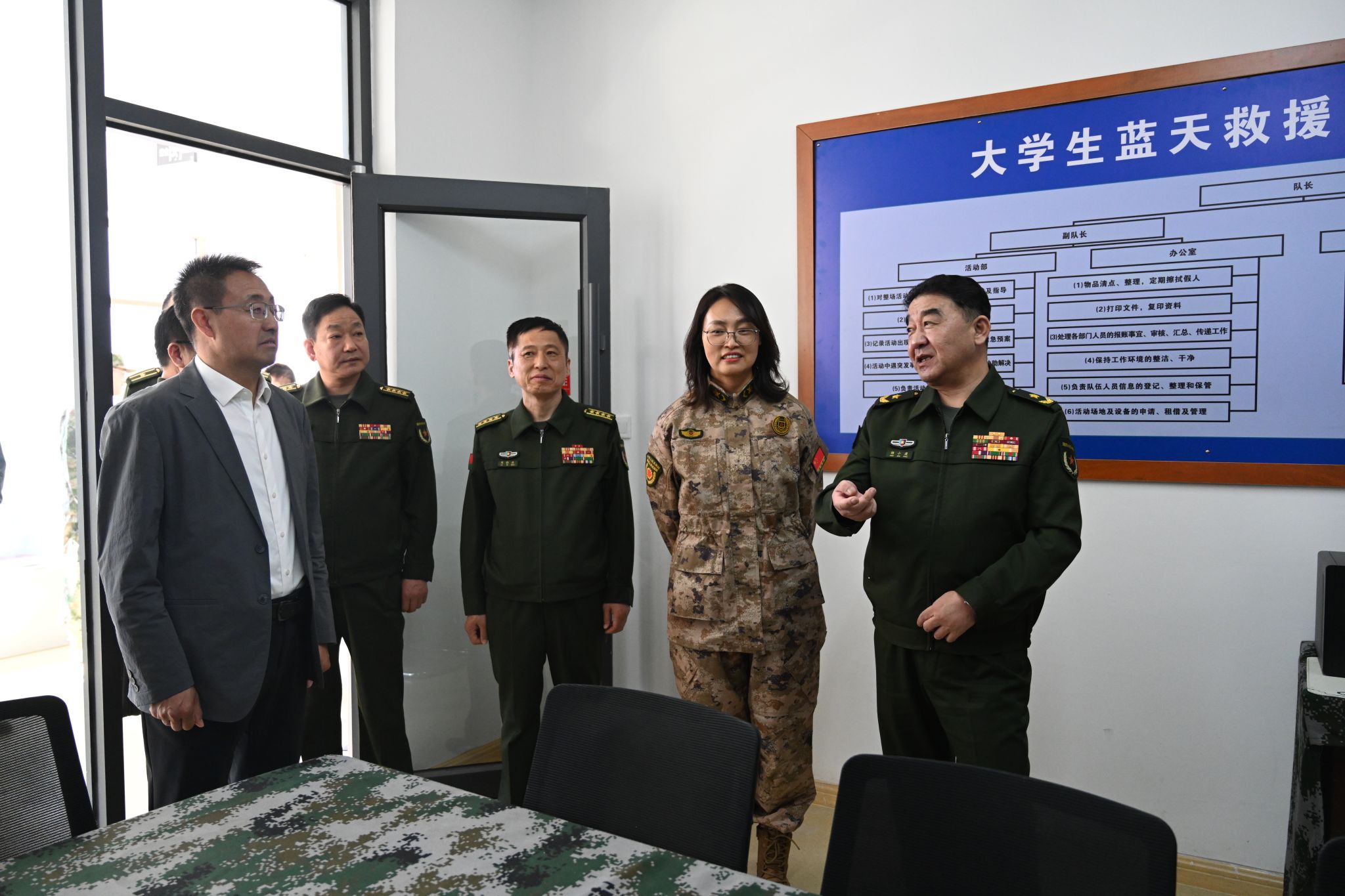 4月23日下午,内蒙古军区少将政委杨小康、政工局大校主任王华林、办公室大校副主任孟应奇,包头军分区大校司令杨志权、包头军分区大校政委刘仕政一行来beat365国防动员综合实践基地调研考察。校党委书记成涛、党委副书记杨建林陪同调研。