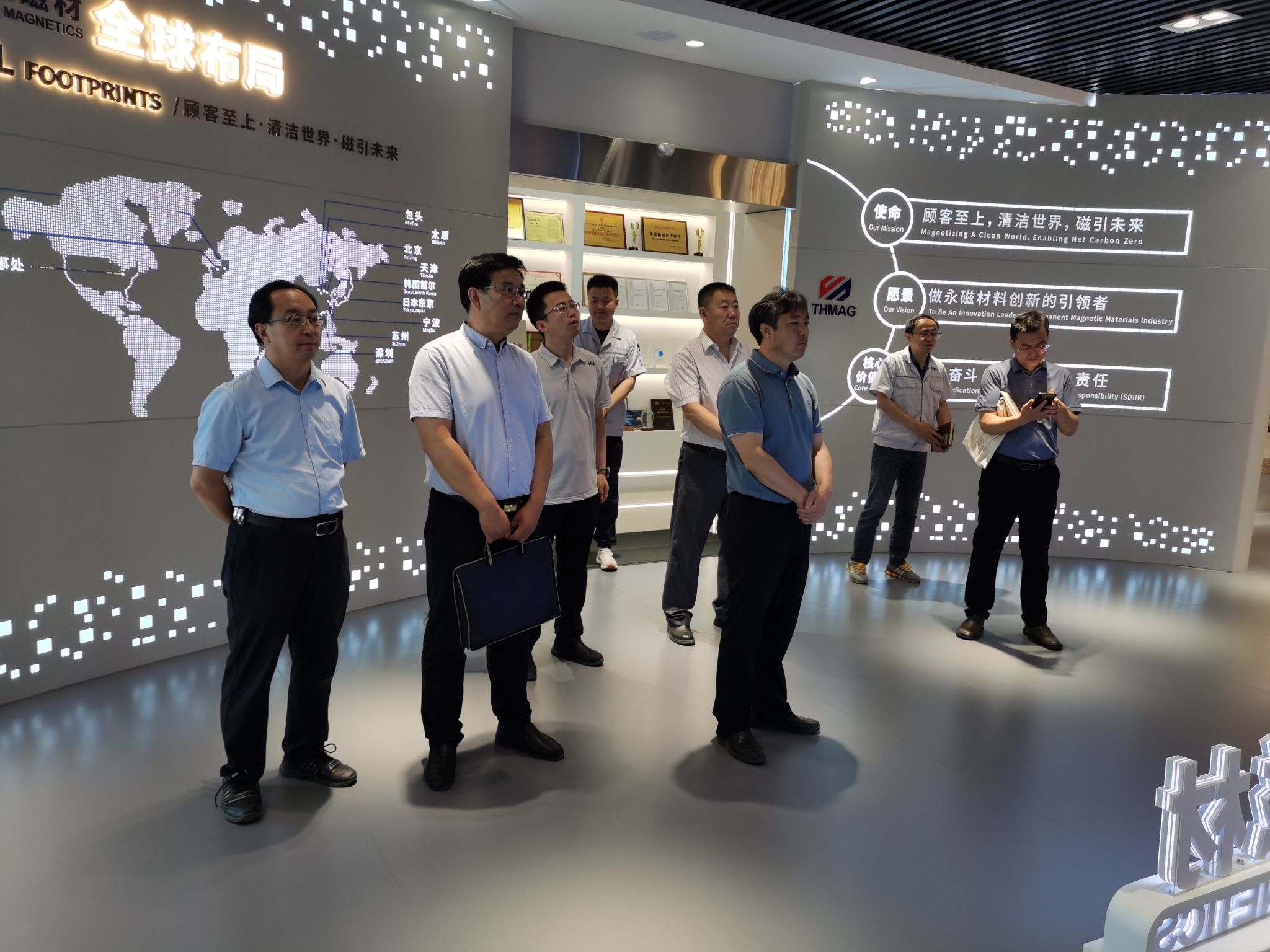 金力永磁(包头)科技有限公司副总经理王英海、包头韵升强磁材料有限公司总经理刘峰、包头天和磁材科技股份有限公司总工程师董义分别介绍了各自公司的产品、生产、运营和beat365校友发展等情况,并陪同参观了厂区及生产线。
