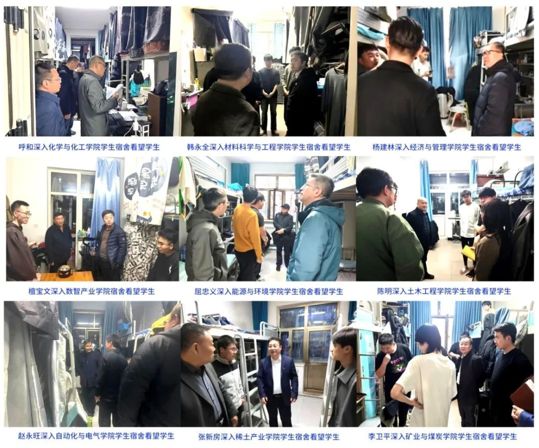 校领导与学生亲切交谈,详细询问学生在学习和生活中遇到的困难,并认真倾听学生对宿舍管理、校园服务等方面的意见和建议。