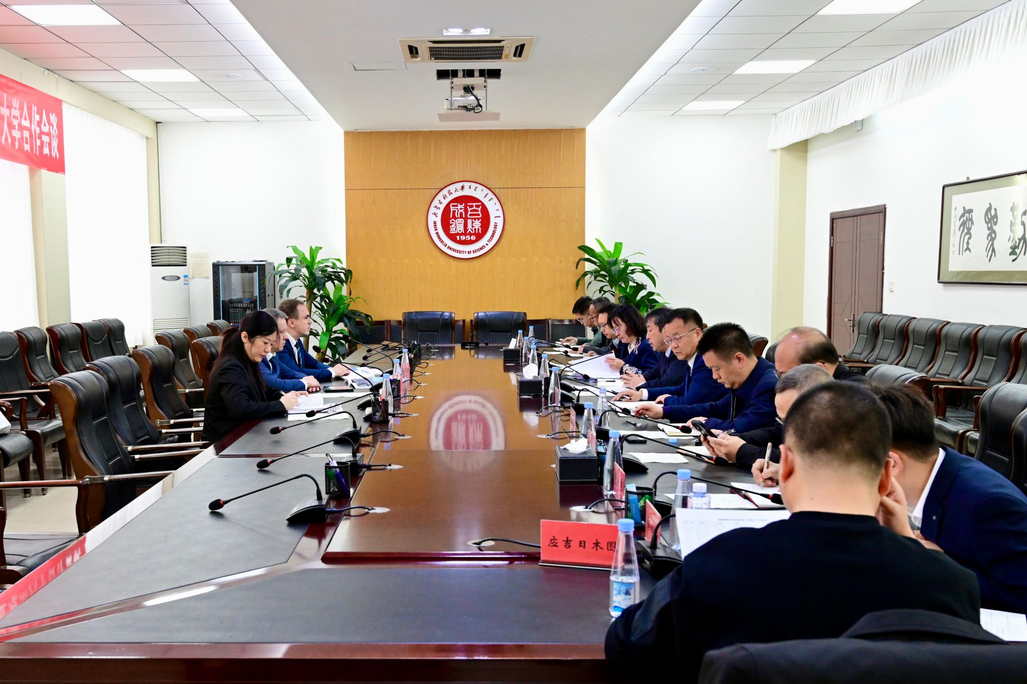 见面会上,校党委书记呼和对米哈伊尔·卡尔尼亚科夫代表团的到来表示热烈欢迎,并强调了两校合作对深化中俄教育交流、服务“一带一路”倡议的重要意义。他说,包头市被誉为“世界稀土之都”和“世界绿色硅都”,在稀土资源开发和绿色硅产业发展方面具有显著的优势和潜力。beat365在线唯一官网始终以服务地方产业为己任,围绕功能材料研发、新能源技术等领域构建特色学科群,推动产学研深度融合,形成了“基础研究—技术开发—产业转化”的全链条创新体系。米哈伊尔·卡尔尼亚科夫对beat365在线唯一官网的热情接待表示感谢并高度评价了学校在学科建设与科研创新领域的成果。