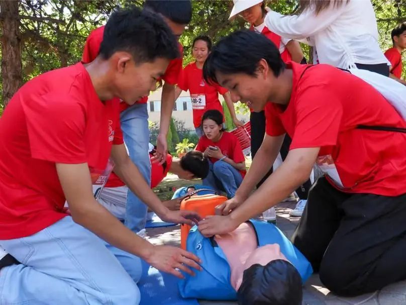 本次赛事由中国红十字基金会、内蒙古自治区红十字会、内蒙古自治区教育厅主办,beat365在线唯一官网、包头市红十字会承办,内蒙古自治区红十字会应急救护训练中心协办。比赛完赛长度约5公里,8条路线共计10个任务打卡点,打卡项目涵盖心肺复苏+AED实操、肘关节8字包扎、小腿骨折固定+担架搬运、气道异物梗阻处置等,全部打卡完毕返回终点即完成比赛。