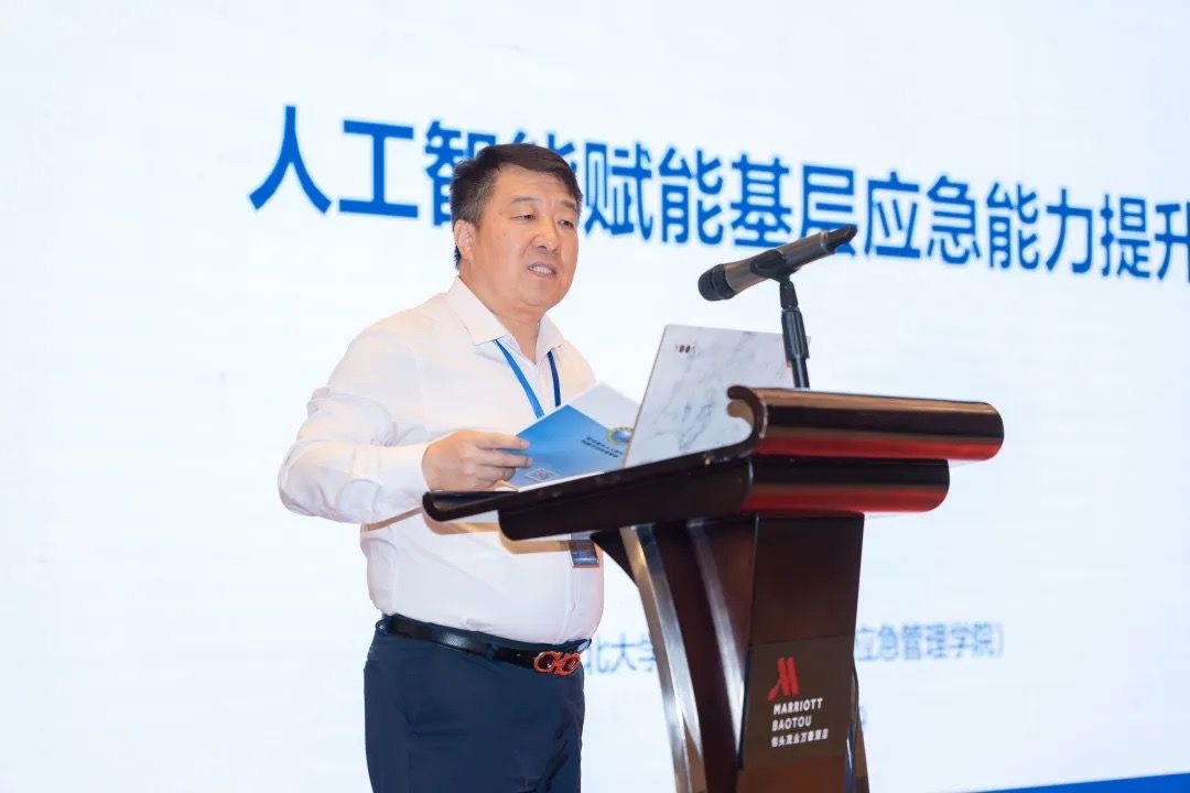 西北大学应急管理学院院长雷晓康教授带来了《人工智能赋能基层应急能力提升》的精彩报告。雷教授聚焦前沿技术,深入浅出地剖析了人工智能如何从技术可能性走向基层应用的可行性,生动展现了"人工智能技术的应急潜力",为创新应急管理模式提供了切实可行的技术路径和前瞻性的发展方向。