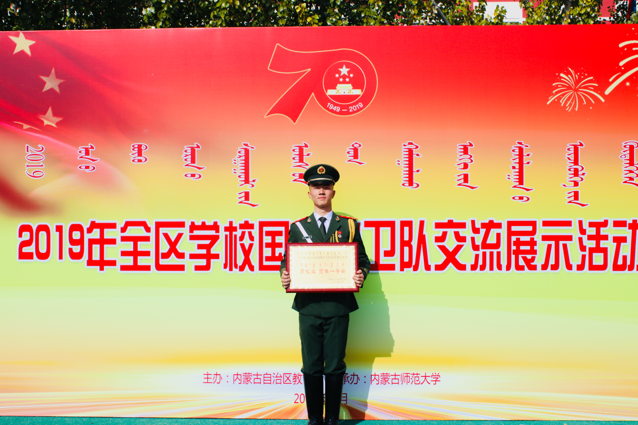 2019 年,在新中国成立 70 周年之际,他作为国旗护卫队的一员,参加了内蒙古自治区学校国旗护卫队交流展示活动,并荣获“全区十佳护旗手”荣誉称号。11 月,代表学校前往北京阅兵村,参加了第六届全国学校升旗手交流展示活动。