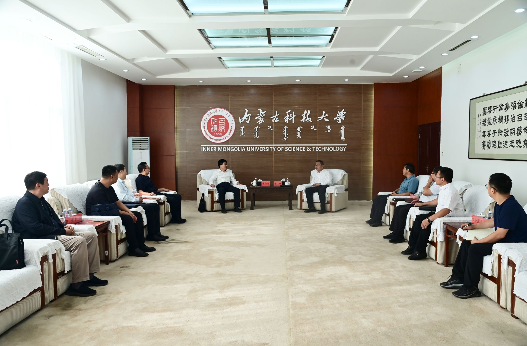 9月5日下午,包头师范学院党委书记韩伟新、校长郭金虎带队来校调研交流。校党委书记呼和、校长韩永全参加相关活动。