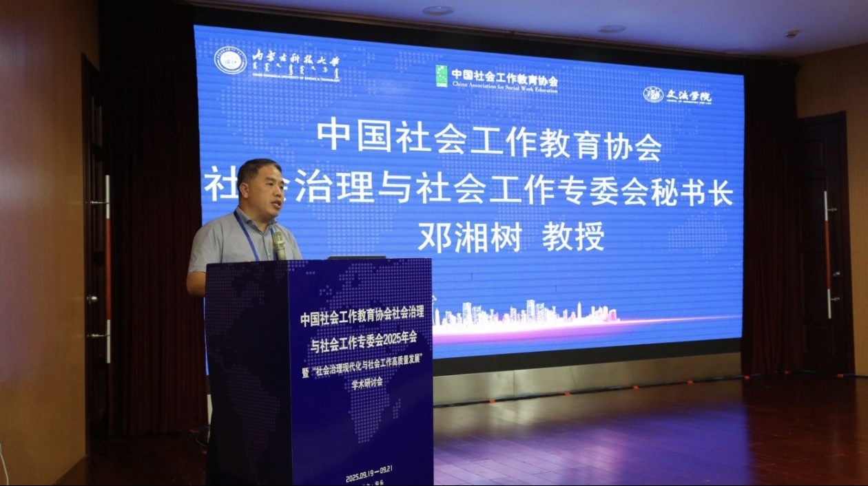 近日,中国社会工作教育协会社会治理与社会工作专委会2025年会暨“社会治理现代化与社会工作高质量发展”学术研讨会在内蒙古包头召开。本次会议由中国社会工作教育协会社会治理与社会工作专业委员会主办,beat365在线唯一官网文法学院承办,南京大学社会学院、西南财经大学社会发展研究院协办,美亚联创(北京)科技有限公司、《社会工作》编辑部提供支持。