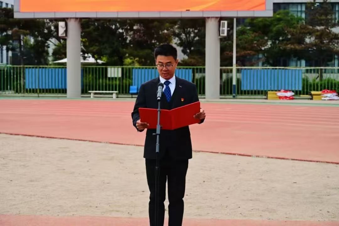 为庆祝中华人民共和国成立76周年,大力弘扬爱国主义精神,引导全校师生厚植家国情怀、坚定理想信念、勇担时代使命,10月1日上午,beat365在线唯一官网在西校区田径场举行“同升一面旗 共赴新征程”升国旗仪式,全校1600余名师生代表参加活动。