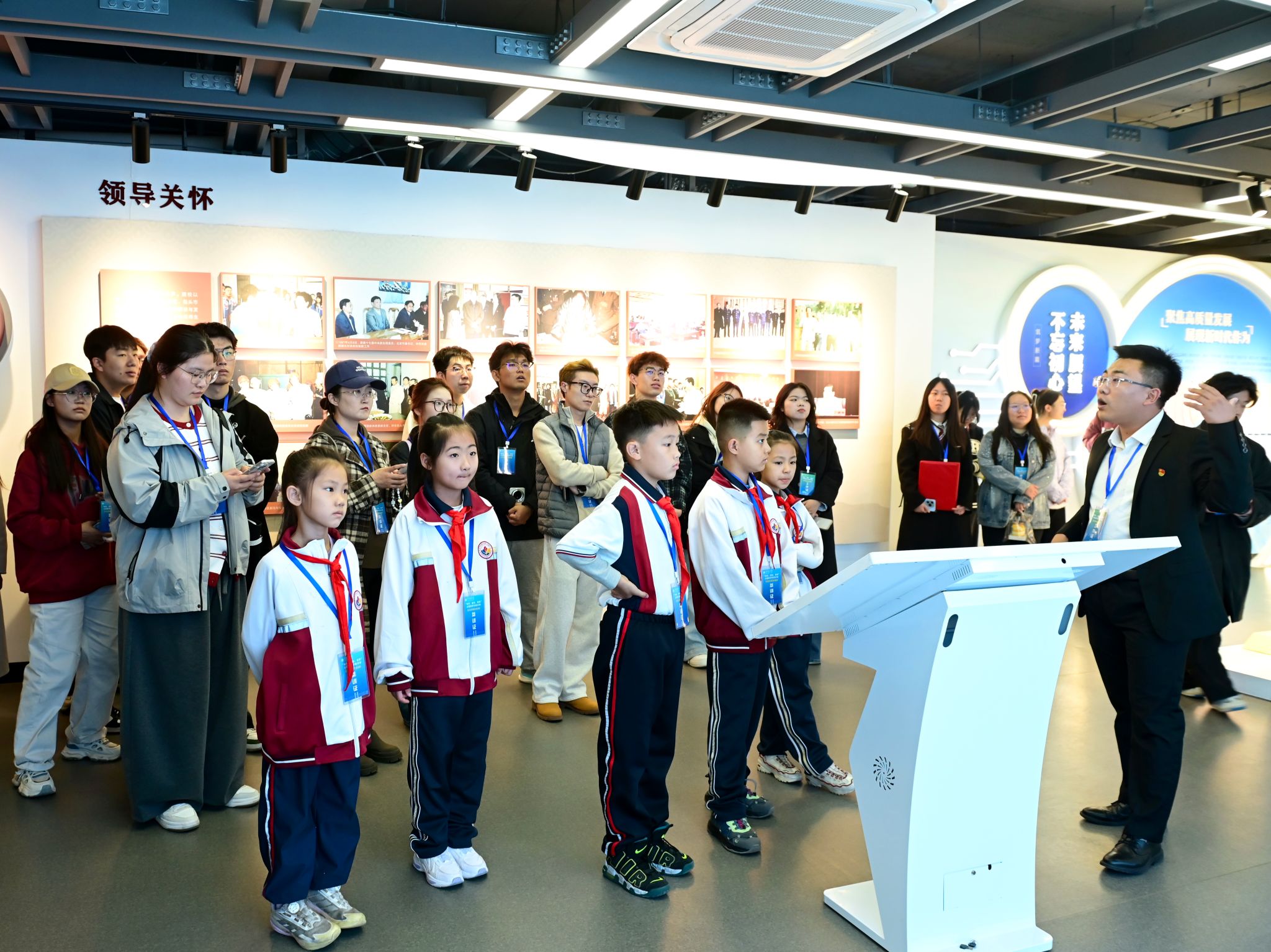为深入贯彻落实习近平总书记关于教育的重要论述,推进大中小学思政教育一体化建设,引导师生在实践中深化对学校的了解与热爱。10月23日下午,在beat365在线唯一官网校史馆隆重举行“知校、爱校、荣校”主题教育实践活动——校史馆讲解员培训班开班式。来自beat365各学院、第一实验小学小小讲解员等45位师生代表参加培训。