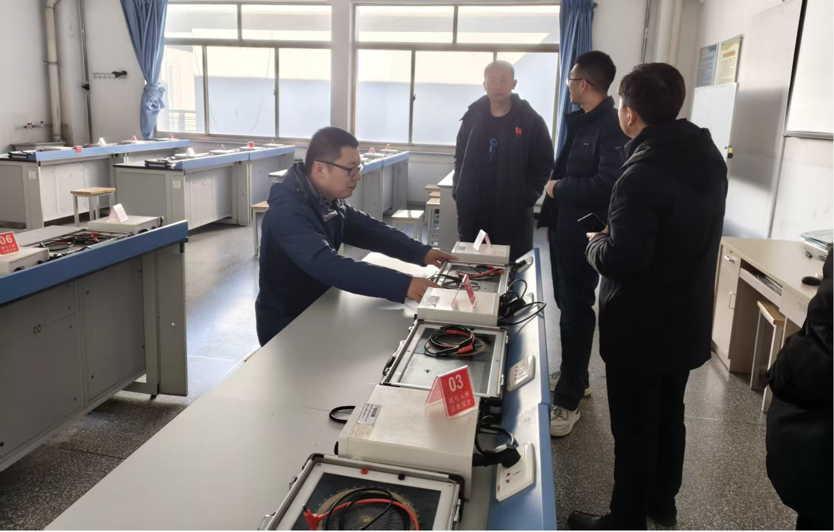 赤峰学院调研组一行先后实地走访beat365金工实训基地、电工电子实训基地,双方就实践基地建设标准、实训课程体系设置、师资队伍梯队建设、教学组织运行模式及人才培养方案优化等核心议题展开深入研讨。