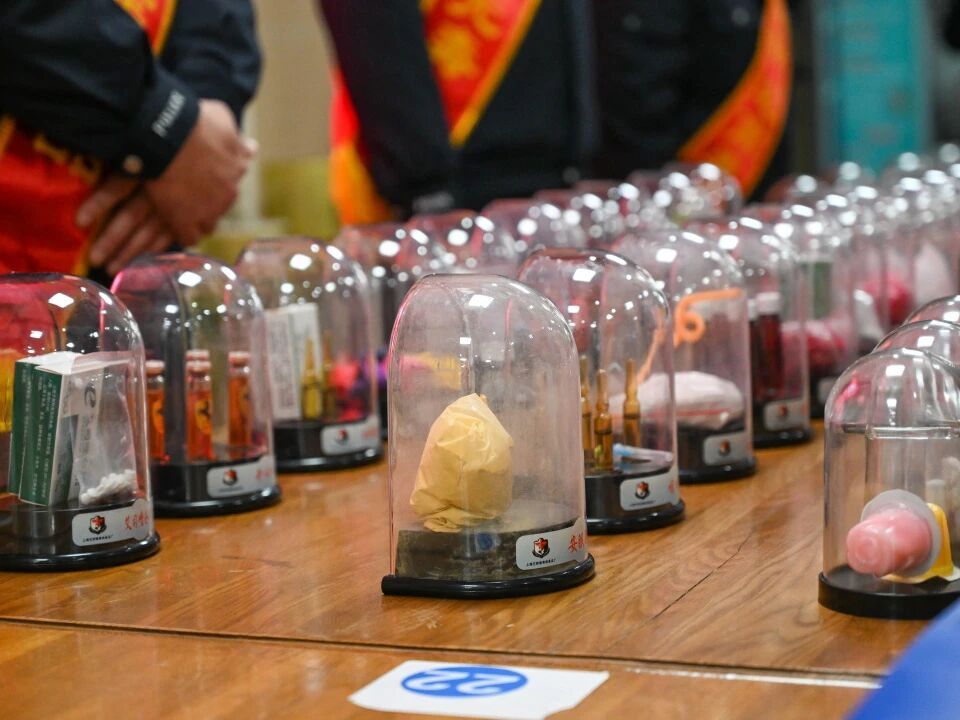 活动现场还设置了展示台,陈列了多种新型毒品仿真模型,让学生们能够近距离观察,增强对毒品的直观认识和辨别能力。