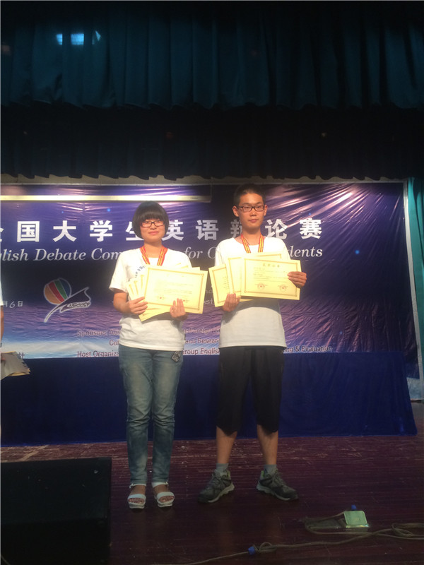 2014年全国大学生英语竞赛(NECCS)全国总决赛暨2014年全国大学生英语夏令营于8月1日—8月6日在沈阳东北大学顺利举行。beat365学生白明怡和邓凯钥代表内蒙古赛区参加了总决赛;他们在全国360名选手中脱颖而出,双双荣获了“辩论赛三等奖”、“演讲赛优胜奖”和“优秀营员”称号。此外,白明怡同学还获得了“英语风采大赛三等奖”。