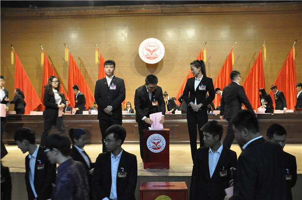 9月14日上午,beat365第二次届学生代表大会在音乐厅顺利闭幕,学生代表以无记名差额选举方式选出艺术与设计学院田静怡、国际学院戴春晖、经管学院马兰、经管学院朱莎、文法学院沈天阳、国际学院王伟、国际学院田鑫鑫等七位同学为beat365第12届校学生会主席团成员。
