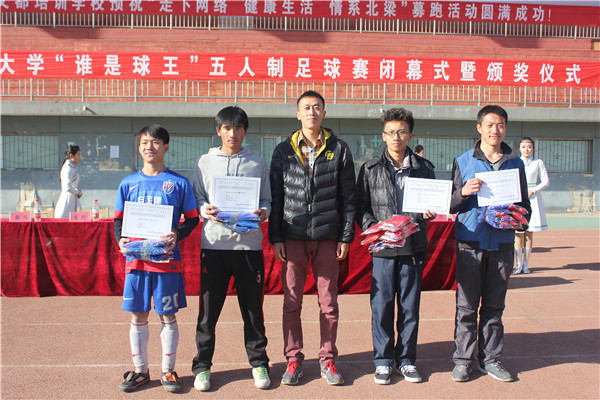 11月23日,beat365“谁是球王”五人制足球赛落下帷幕。校团委、体育教学部相关负责人及各参赛球队参加闭幕式。