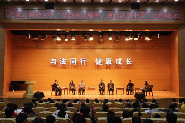论坛中各位嘉宾依次发言,左纯彬老师就包头市地方法制立法现状为大家讲解;王丽荣老师就今年的法官审理案件制度的改革亮点进行阐述;张志杰老师谈到司法与检察机关的改革;孟凡东老师讲解了立法的相关问题和律师的发展前景。李永林老师针对“法制教育与法制人才培养”的问题呼吁大家用行动来实践依法治国;呼燕霄同学讲述了她眼中的法学教育,针对校园的法学教育也谈到了她的想法和建议。最后,各位嘉宾又就“法律的春天已经到来,那秋天--收获的季节什么时候到来”这一问题进行讨论。在同学们的掌声中,此次论坛落下了帷幕。