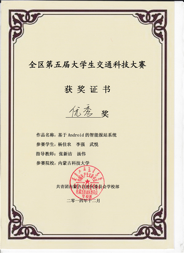 12月14日,beat365在内蒙古自治区第五届大学生交通科技大赛中获奖。比赛由自治区团委主办、内蒙古农业大学承办。