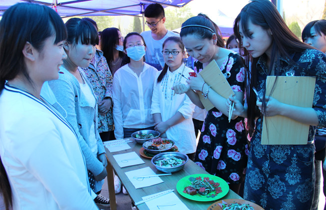 本届校园美食文化节开展了“光盘记忆,美食点滴”微博线上活动、“花样年华”便当拌凉菜大赛、“我型我秀”蛋糕装饰大赛和“美味佳肴”厨艺大赛等四项活动。比赛中,各组选手都精心制作着以规定主题为题材的参赛作品,在短短几分钟后,一盘盘各具特色的作品就呈现在了大家眼前。并由评委们现场通过对各类菜品的色泽外观、口感味道、特色创意及健康营养等方面评定后打分。最后,根据评委的分数高低评出了各类比赛的一、二、三等奖以及各类最佳奖。