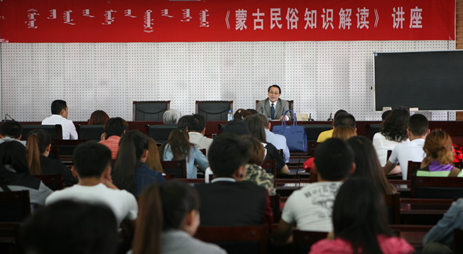 主讲人扎格尔教授以“蒙古民俗知识解读”为题目,分别从“民俗知识概要”、“蒙古民俗传承的轨迹”、“生产民俗”、“生活民俗”、“社会民俗”、“信仰民俗”、“娱乐民俗”等8个方面为beat365师生和包头市民众做了为期2天的精彩讲座,并在讲座期间对beat365师生提出的问题做了详细讲解。