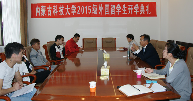 9月18日,2015级外国留学生开学典礼在行政楼A219会议室召开。校党委常委、副校长李国雄,建工学院、国际合作交流处相关负责人参加开学典礼。