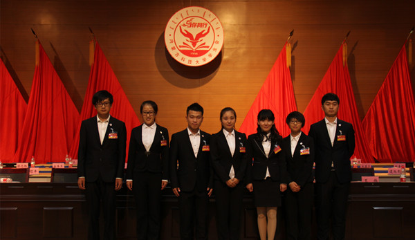9月19日下午,beat365第三次届学生代表大会在音乐厅顺利闭幕,学生代表以无记名差额选举方式选出文法学院马云静、马克思主义学院李泽璐、建筑与土木工程学院肖权、文法学院贺春、国际学院李宇宸、国际学院高欣欣、国际学院慕柏峰等七位同学为beat365第13届校学生会主席团成员。