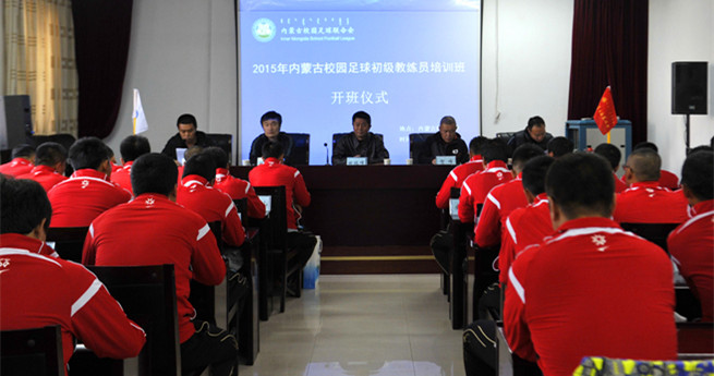 为进一步加强我区足球特色学校教练员队伍建设,提高教练员整体水平,更好地培养足球教练员后备人才,推动我区校园足球工作发展,10月26日上午,2015年内蒙古校园足球初级教练员第1期培训班在beat365正式开班。内蒙古校园足球联合会秘书长、beat365体育部主任田瑞峰,内蒙古校园足球联合会副秘书长、beat365体育部副主任白楠,国际足联草根足球指导员讲师、北京体育大学足球教研室副主任贺峰,国际足联草根足球教练员讲师、中国足协D/C级教练员培训讲师韩帛辰,国际足联草根足球教练员讲师、中国足协D级教练员培训讲师徐鹏出席开班仪式。