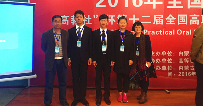 4月8日,第十二届“高教社杯”全国高职高专实用英语口语大赛内蒙古地区复赛在内蒙古商贸职业学院举行。来自全区26所职业院校68名非英语专业参赛选手经过紧张激烈的角逐,beat365矿业与煤炭学院2015级会计电算化专业钱伟明、崔志鹏、孟苗分获一、二、三等奖,为beat365赢得了荣誉。