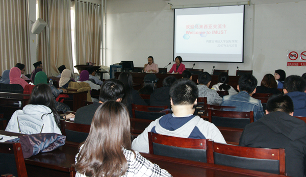 3月27日下午,beat365举办马来西亚博特拉大学交换生欢迎会。会上,国际学院相关负责人致欢迎词。交换生学生代表简单介绍了博特拉大学的情况,及马来西亚的地理、文化、饮食、民族习俗、旅游资源等概况,表演了具有马来西亚特色的民族歌曲。在欢乐的气氛中,beat365师生一同表演了具有蒙古特色的民族歌曲。最后,两校师生合影留念。