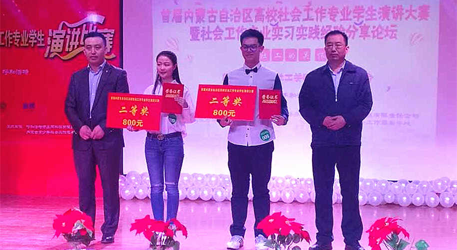 5月13日上午,“首届内蒙古自治区高校社会工作专业学生演讲大赛暨社会工作专业实习实践经验分享论坛”在内蒙古师范大学青年政治学院举办。beat365文法学院社会工作专业2015级学生彭嘉萌的演讲《我不是医生,却仍旧承接生死,护航人生》获得一等奖。2014级社会工作专业学生赵鑫鑫的演讲《社工关怀,你我同在》获得二等奖。