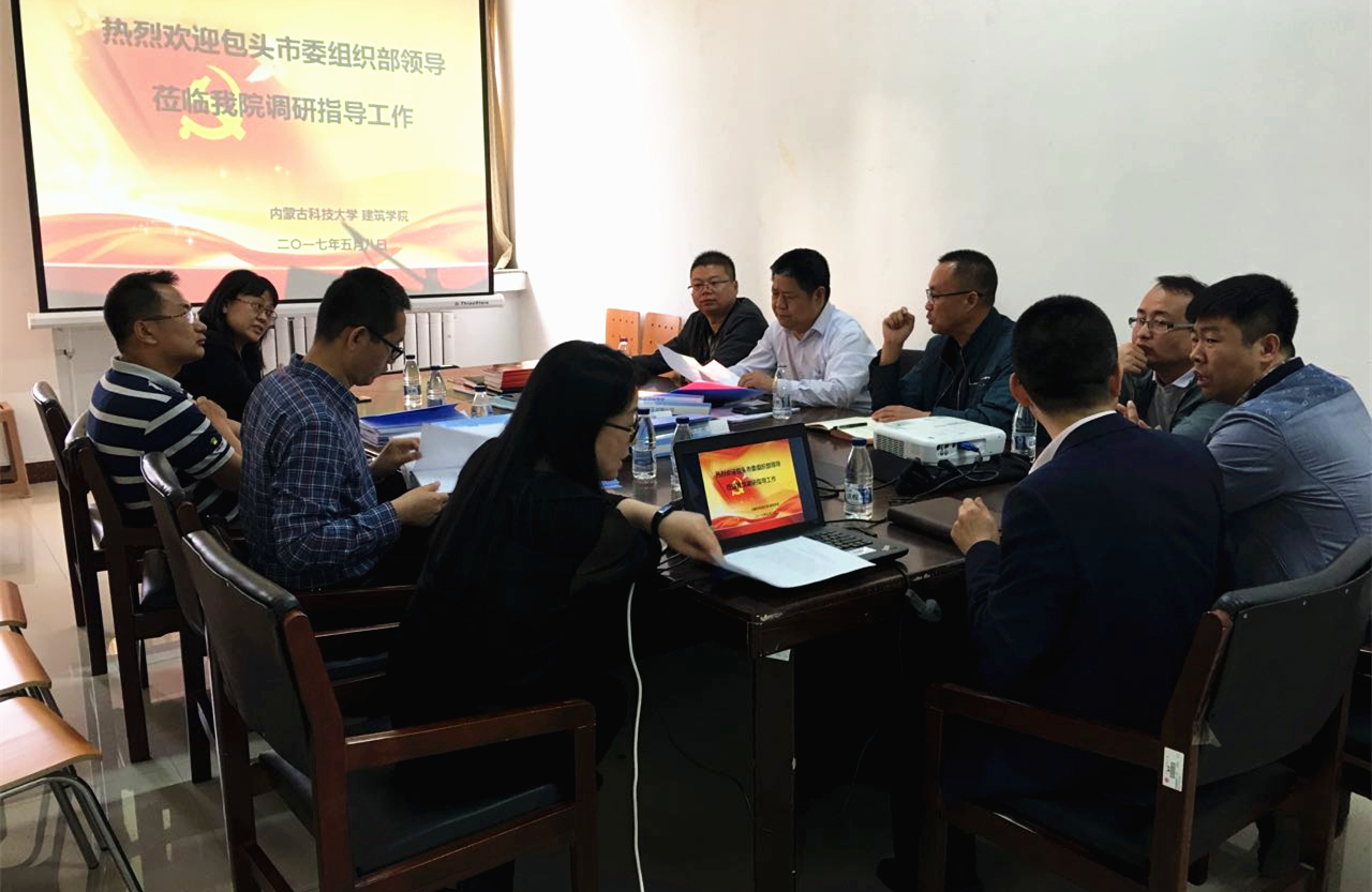 近日,包头市委组织部干部四处处长何丽仁、副处长潘伟,党建秘书处处长庞建光,秘书处正科级组织员赵宏一行4人莅临beat365进行党建相关工作专题调研。校党委常委、组织部部长冯志强,宣传部、学工部负责人以及相关工作人员参加了调研座谈会。