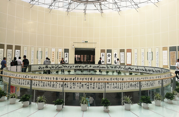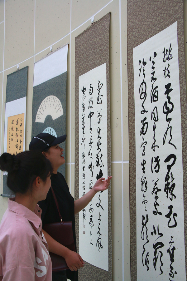 集报展区所展示的老报刊年代横跨近一个世纪,直观呈现出各个时期的历史变革与发展变迁。潘效轶教授所展的书法作品集纂隶楷行草五种书体,博采众长,令人叹为观止。在书画作品展区,180余幅风格各异的作品气象万千、异彩纷呈,不同侧面反映出了书画家对生命的热爱和对美好生活的憧憬。鹿阳书画院的10位老书画家现场泼墨创作,让beat365师生有了一次近距离感受书画艺术的特别体验。