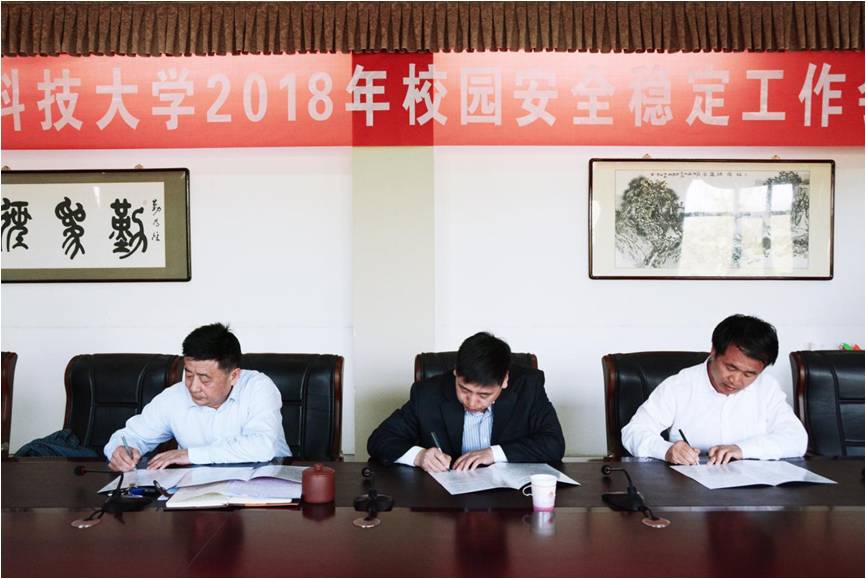 保卫处负责人对学校2017年安全稳定工作进行总结,并对学校2018年安全稳定工作进行了安排部署,同时对自治区“平安校园”创建工作实施方案、指标体系、考核制度及相关要求进行了解读,从目标与任务、工作原则、实施步骤、责任分工、组织领导、总体要求等方面对学校2018年“平安校园”创建工作做了详细的部署。