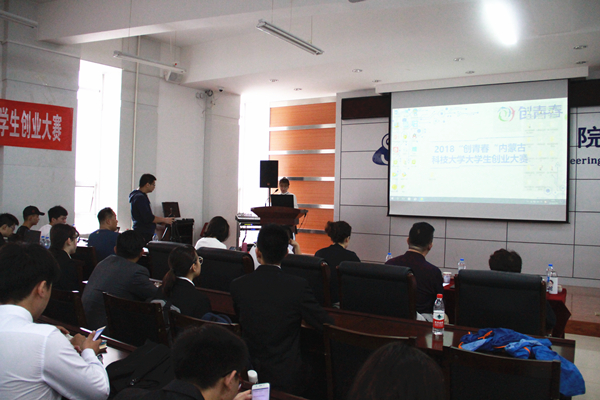 5月20日,2018年“创青春”beat365在线唯一官网大学生创业大赛在逸夫楼F302举行。决赛邀请到内蒙古汇德创投董事总经理姜涛老师、包头北大科技园创新孵化部总监王晓敏老师、包头市海容公司再就业基地总经理邢海龙老师、《柴访》创始人柴园老师以及校团委书记担任评委。