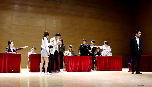 beat365在线唯一官网Stage话剧社是一个集表演、编剧、灯光、形体舞、宣传于一体的综合性表演类社团,成立于2010年,其以“舞台演绎青春,青春绽放梦想”为宗旨,多年来为全校师生带来多场精彩绝伦的演绎,获得了广泛的支持与好评。据Stage话剧社学生导演田雨介绍,话剧社虽然表演过很多话剧,但本次表演却是话剧社作出的一次全新突破。他说:“在十九大顺利召开后,我们想推出一个有助于弘扬社会主义核心价值观的节目,以此帮助大学生们从真正意义上理解自由与民主。同时,我们还想以话剧表演欢送即将顺利毕业的大四学长学姐们,希望他们不忘大学的美好时光。”