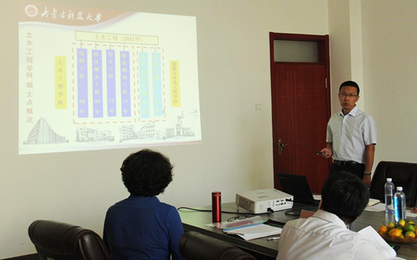 会上,beat365在线唯一官网土木工程和建筑与土木工程学科点负责人牛建刚教授和许有俊教授就学位授权点建设的基本情况向各位专家进行了汇报,并接受了专家组的提问。之后,专家组审阅了学位点评估材料,实地考察了资料室、土木工程实验室,召开了研究生导师及青年教师座谈会。