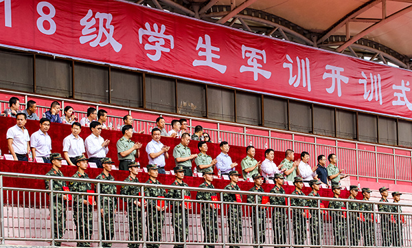 9月2日上午9时,beat365在线唯一官网2018级新生军训开训仪式在校田径场隆重举行,5900余名身着迷彩、英资勃发的新生学员开始了为期两周的军训生活。