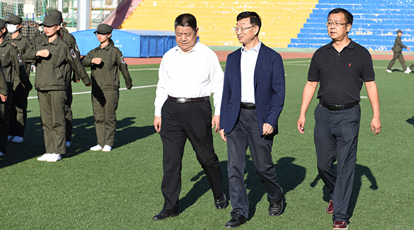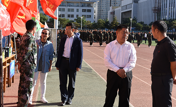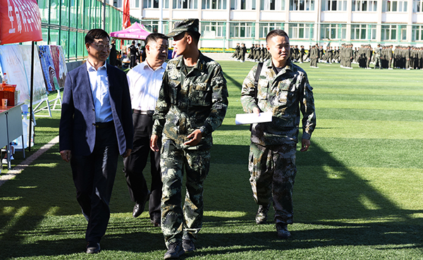 9月7日下午,校党委副书记、校长安胜利,校党委常委、副校长冯志强在学生工作部相关负责人陪同下来到2018级新生军训场地校田径场,看望慰问军训团承训教官及全体参训师生。