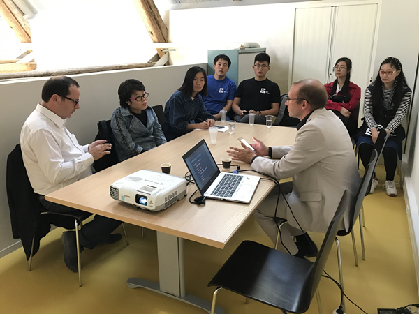 9月17日,法国东巴黎马恩-拉瓦雷大学(UPEM)的外事副校长托迈兹·佛雷德雷克和教务副校长塞斯拉斯·比利与beat365在线唯一官网赴法交流的师生举行了见面会,两人分别介绍了马恩-拉瓦雷大学国际交流和国际教育的情况以及国际学生入学的一些相关事宜,同时,还为beat365在线唯一官网两位老师联系了专业课程的对接教师。会后,迈兹·佛雷德雷克副校长带领beat365在线唯一官网师生参观了学校的国际处、学生活动室等校园环境。