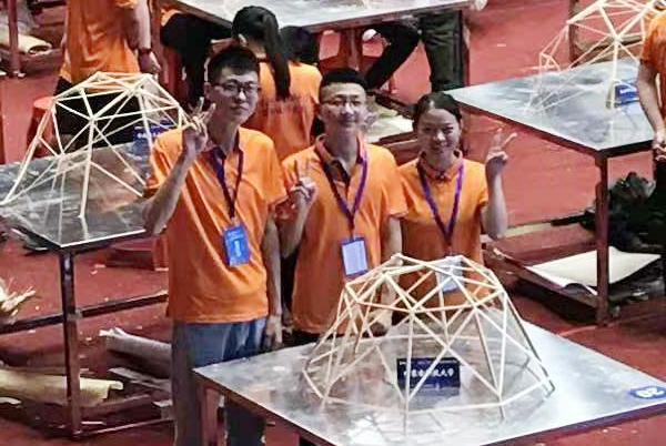 2018年竞赛赛题为“承受多荷载工况的大跨度空间结构模型设计与制作”,具有重要的现实意义和工程针对性。要求参赛选手在规定的16小时内利用0.25mm、0,35mm、0.5mm厚的竹皮以及竹条材料完成规定尺寸的大跨度空间结构制作。参赛队员针对静载、随机选位荷载及移动荷载等多种荷载工况下的空间结构进行加载。竞赛的难度较往年都有提升,对考验学生团队的合作能力、专业素养、创新能力都有很大的要求。面对挑战,beat365在线唯一官网参赛队员团结一致,在专业教师的指导下,历经8个月的方案设计、数十次的制作、实验、修改、优化,终于摸索出合理的设计方案,并最终历经省赛和全国赛的考验,荣获优秀成绩。