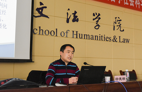 自治区第七届哲学社会科学优秀成果政府奖一等奖获奖成果《专利实用性要件研究》作者杨德桥教授作了《哲学社会科学研究心得——以内蒙古自治区第七届哲学社会科学优秀成果政府奖获奖成果为例》主题报告。本次宣讲以获奖成果为例,围绕哲学社会科学研究如何选择研究课题、如何进行成果积累以及获奖成果主要内容等三个方面进行展开。宣讲会气氛热烈,反响很好。通过宣讲,增进了广大师生对于哲学社会科学研究的了解,促进学校哲学社会科学研究的发展。