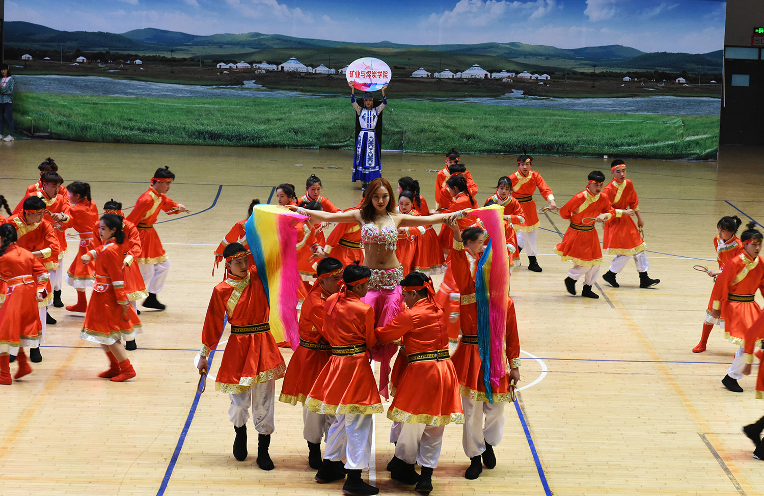 开场舞中,各学院都展现出自己的别样风采。在随后各学院的表演赛中,生命科学与技术学院代表队身着民族服饰,令现场观众眼前一亮;能源与环境学院代表队摆成70的字样寓意着庆祝新中国成立70周年,令人印象深刻;经济与管理学院代表队以骑马舞入场,40名姑娘舞姿绰约而又不失豪情逸致,优美的身姿尽显青春活力;外国语学院、理学院、材料与冶金学院等代表队的表演都个性十足、豪放热情、极富民族风情……,紧张激烈的角逐后,比赛在师生代表共同带来的闭幕舞《护花使者》表演完毕后圆满结束。