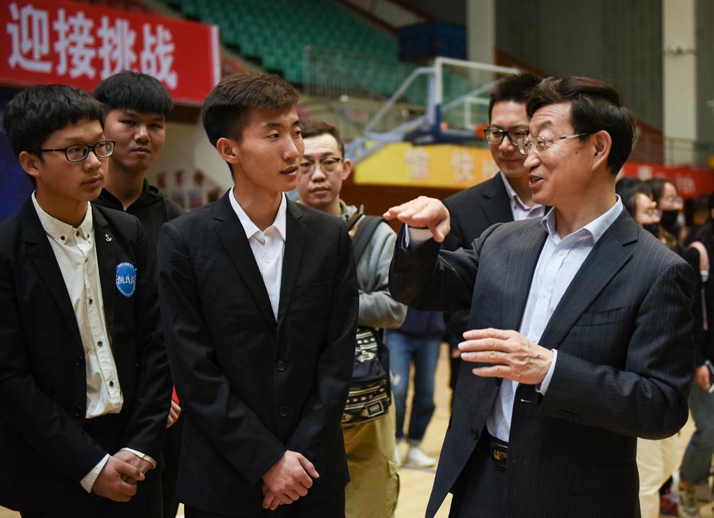 4月21日,beat365在线唯一官网举办第七届“挑战杯”大学生课外学术科技作品竞赛终审决赛及参赛作品展在学校体育馆隆重举行。校党委副书记、校长安胜利,党委副书记任慧平,校团委、教务处、科技处、学生会、研究生院相关负责人出席决赛开幕式。