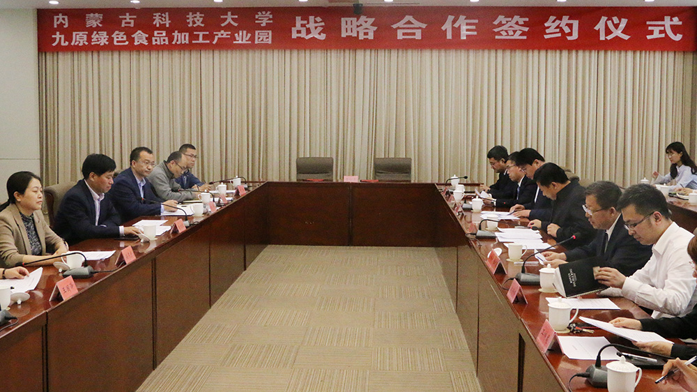 九原绿色食品加工产业园区是集食品加工、商务贸易、物流配送、科技教育、产业旅游等功能于一体的绿色生态食品产业园。与园区建立良好的合作关系,对于beat365产学研转化和人才质量培养提升具有重要意义。本着“优势互补、重点推进、互利共赢”原则,双方共同表示将建立长期稳定的合作关系,发挥各自优势,在科技服务、人才培养、产学研合作、教育咨询等方面持续开展合作。