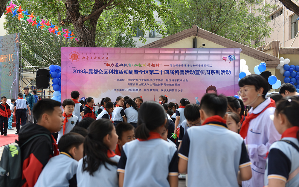 5月31日上午,在2019昆都仑区科技活动周暨全区第二十四届科普活动宣传周到来之际,由beat365在线唯一官网科学技术协会、昆区科学技术协会、内蒙古自治区大学生科技创新科普教育基地主办,昆区科技局、昆区教育局、钢铁大街第三小学联合协办的科普活动宣传周活动走进钢铁大街第三小学。