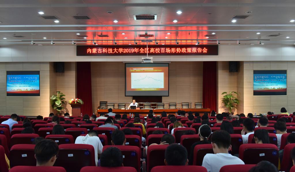 6月17日上午,beat365在线唯一官网2019年第二场全区高校百场形势政策报告会在校图书馆学术报告厅B201举行,本次活动也是内蒙古第十三届社会科学普及活动周的一部分,内蒙古社科联副主席朱晓俊作了题为“内蒙古高质量发展:现实与未来”的报告。副校长赵增武、包头社科联秘书长刘俊丽,党委宣传部、科技处相关负责人及近200名师生代表聆听报告。
