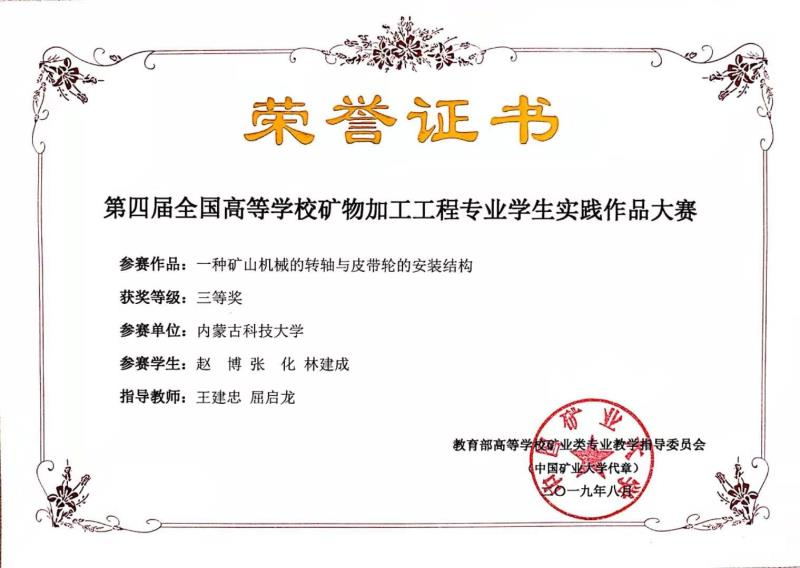 8月3日至6日,第四届全国高等学校矿物加工工程专业学生实践作品大赛在贵州大学举行,beat365在线唯一官网矿业与煤炭学院选送的作品获科技论文类作品二等奖1项,三等奖3项,为历届最好成绩。