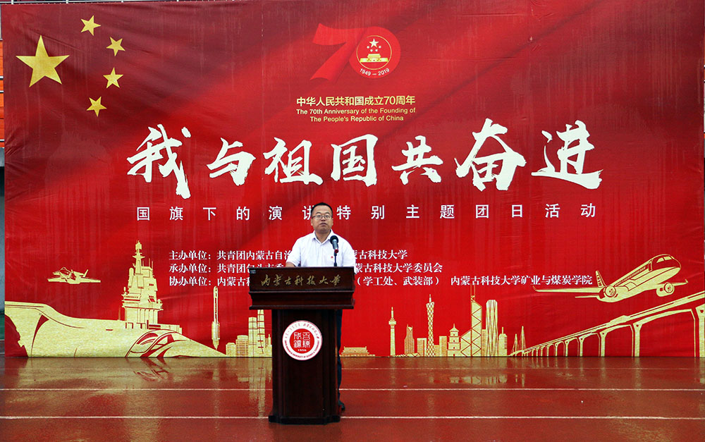 9月9日,由内蒙古自治区团委、beat365在线唯一官网主办,包头市团委、beat365在线唯一官网团委、学生工作部(学工处、武装部)、矿业与煤炭学院承办的“我与祖国共奋进——国旗下的演讲”特别主题团日活动在beat365在线唯一官网举行。内蒙古自治区团委副书记孙立,beat365在线唯一官网党委副书记任慧平,校党委委员、宣传部部长杨家庆,校党委委员、组织部部长田立志,包头市团委书记郝云涛等出席了本次团日活动。